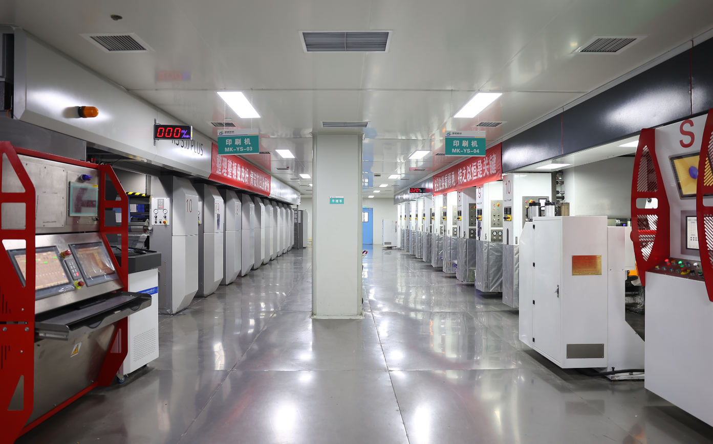 ERP、MES、MDC系统,智能配色系统和油墨粘度中央自动控制系统,关键设备在线视觉检测系统,实现产品全流程实时质量监管